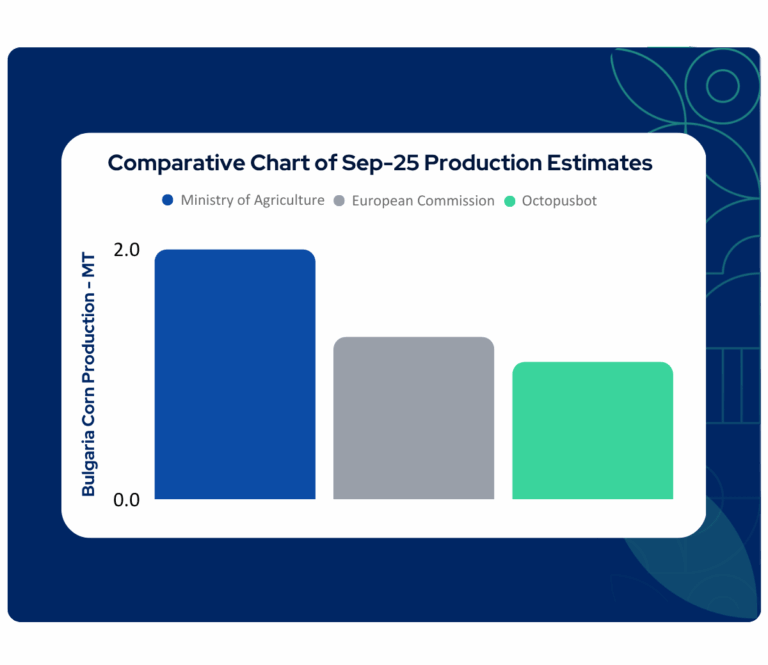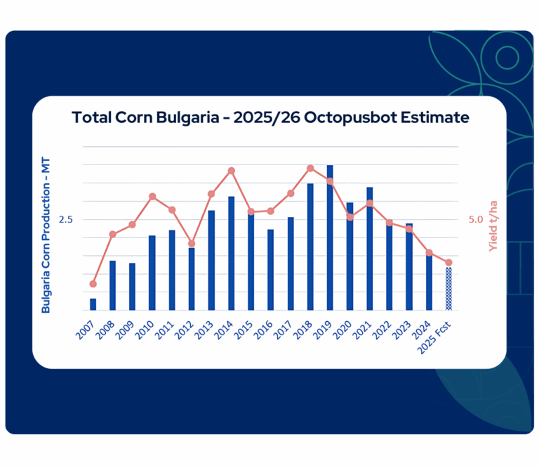 Octopusbot has continued to predict a significant decline in Bulgaria’s corn production since May 2025, giving market participants a timely and more accurate view of production risks, while European agencies have yet to fully reflect these conditions.