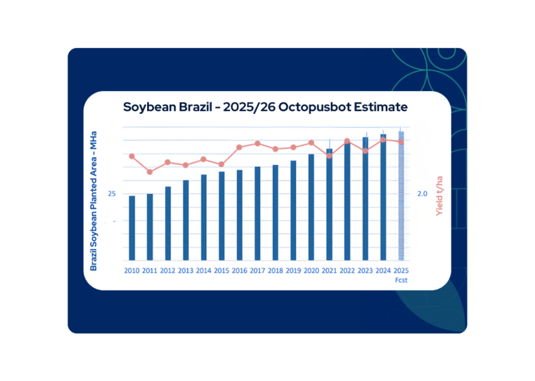 Across South America, the 2025/26 season has been defined by shifting weather conditions that evolved differently across regions and crop stages through the season. These developments are now translating into varied yield outcomes across South America’s major crops. Octopusbot’s AI models quantify these developments by analysing hundreds of weather parameters across the crop cycle at a regional level, enabling a detailed assessment of how changing conditions translate into yield outcomes across major producing areas.
