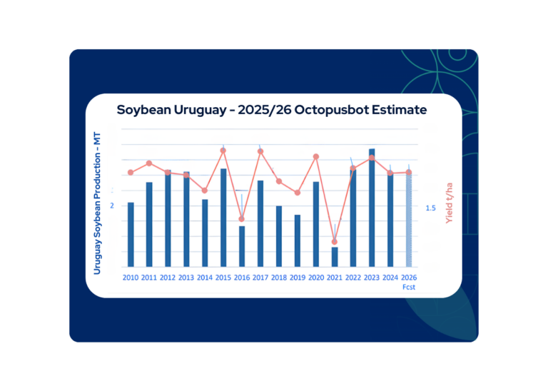 This blog examines the latest developments in Argentina corn, Brazil soybean, and Uruguay soybean, focusing on how weather patterns, harvest progress, and regional crop conditions are shaping production estimates across South America in the 2025/26 season, with NDVI indicators providing supporting evidence for Octopusbot’s outlook.
