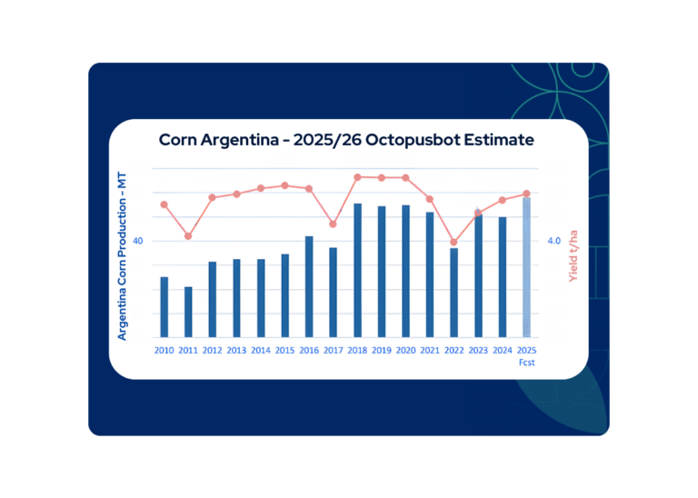 Octopusbot’s latest estimate for Argentina corn production in the 2025/26 season is 11.5% higher than USDA, pointing to a stronger production level than currently reflected in USDA’s outlook.